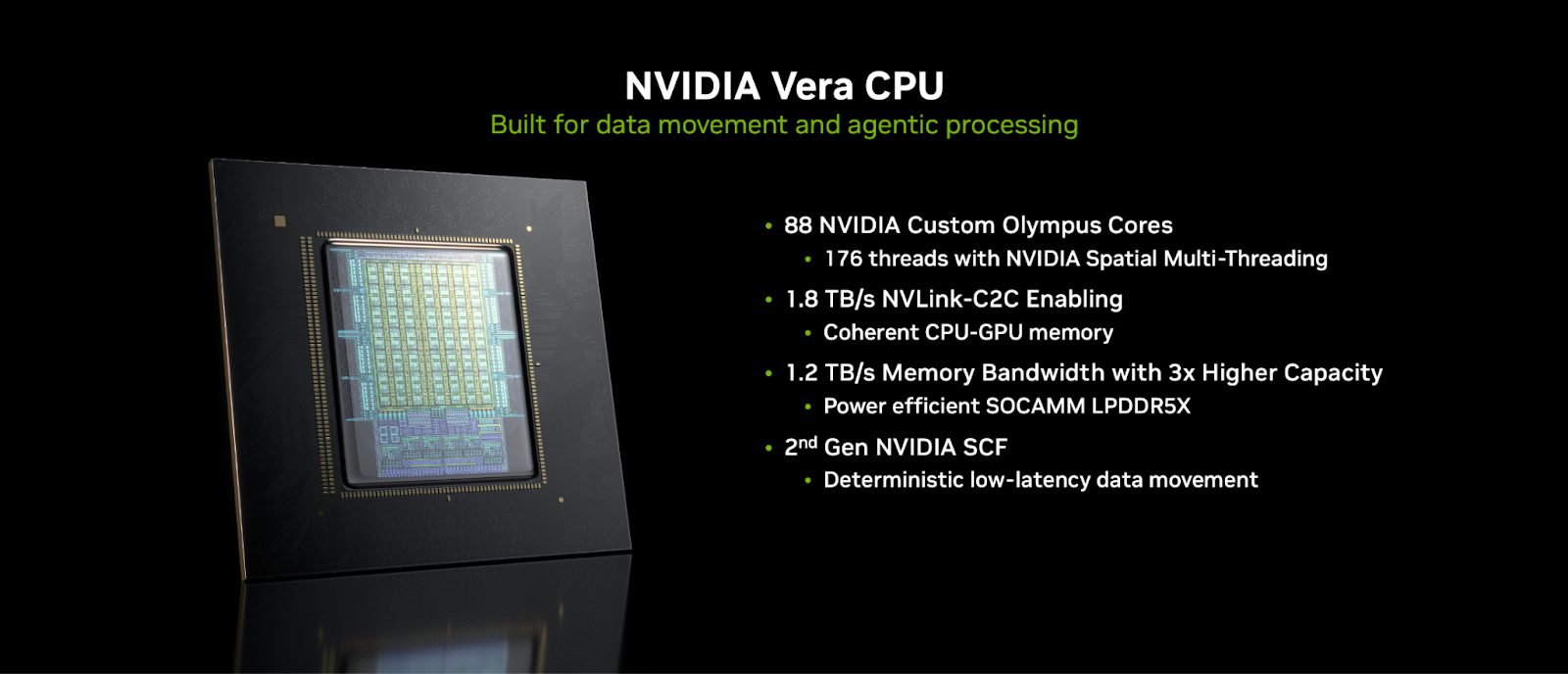 Vera 是從零設計的。核心架構換成 NVIDIA 完全自研的 Olympus 核心,88 個,保持 ARMv9.2-A 指令集相容(軟體生態不用重寫),但內部全部重來。